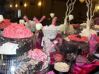 Sweet and Swanky Candy Buffet... A candy buffet takes the place of individual favors at any event. The buffet is available for wedding receptions, baby showers, birthdays, or any type of party or celebration. Let us do all the work, and your guests will LOVE choosing their own treats!