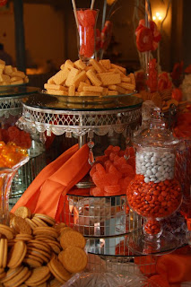 I am adding pictures of some of the buffets...enjoy! The colors are based on the colors of your event. Also, we always include a centerpiece to help add to the buffet display. The buffet can range in size, depending on your guest list.