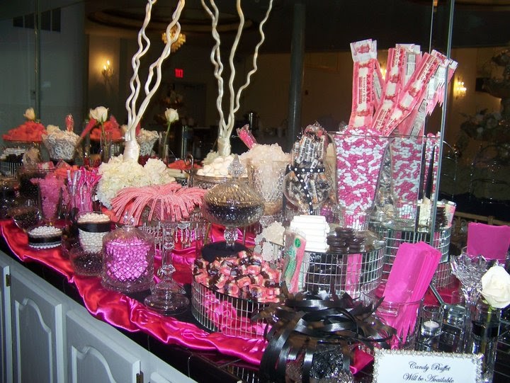 Sweet and Swanky Candy Buffet... A candy buffet takes the place of individual favors at any event. The buffet is available for wedding receptions, baby showers, birthdays, or any type of party or celebration. Let us do all the work, and your guests will LOVE choosing their own treats!